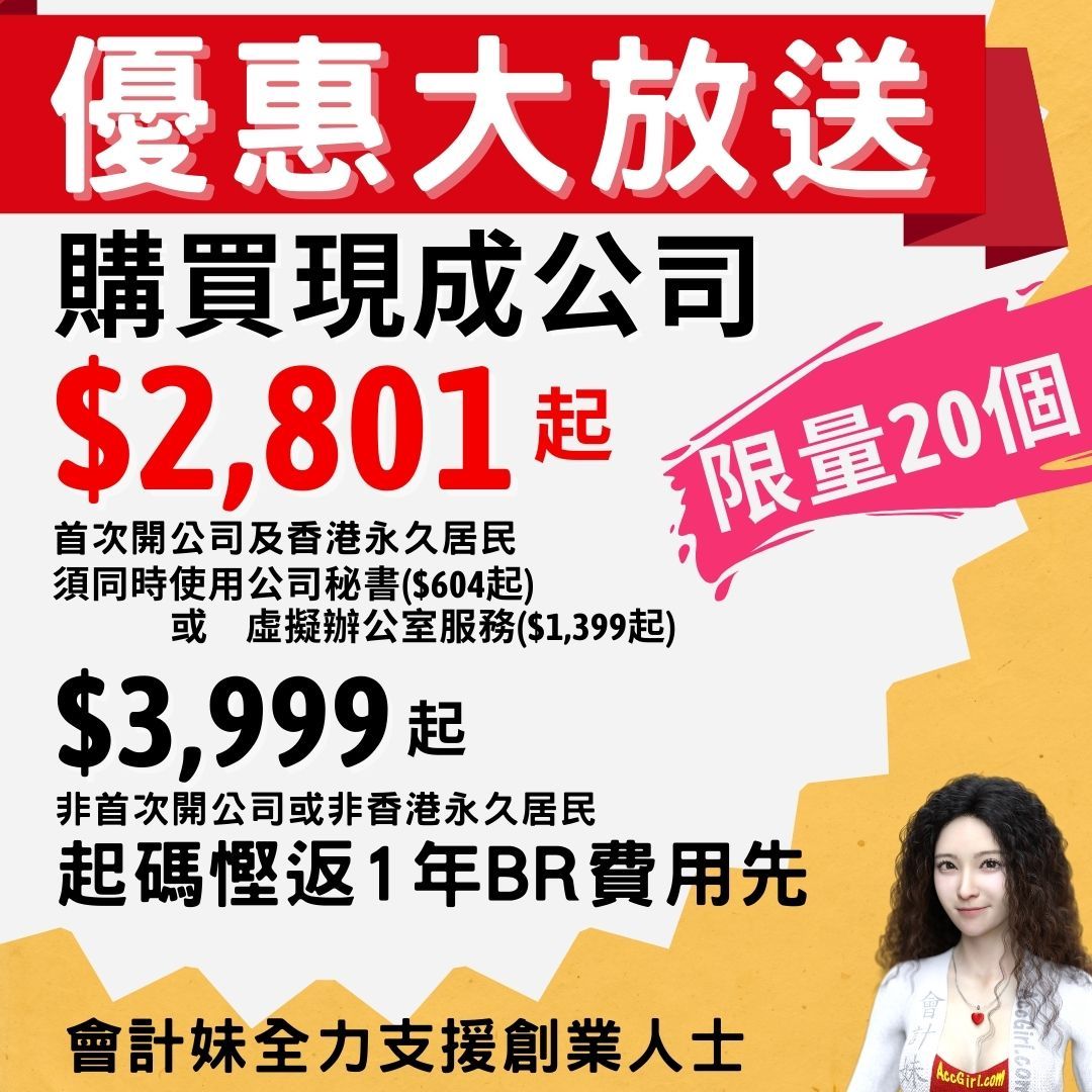 (送HK$1,500 HK$2,500電子禮券可即時抵扣會計妹服務)